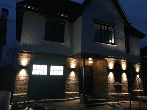 A total re-working of an original 1960s house in Cobham. One wall remained of the original ‘60s house. The footprint of the old house was extended with large extensions to the side and back of the property. New landscaped gardens and a new double garage to the side were added.